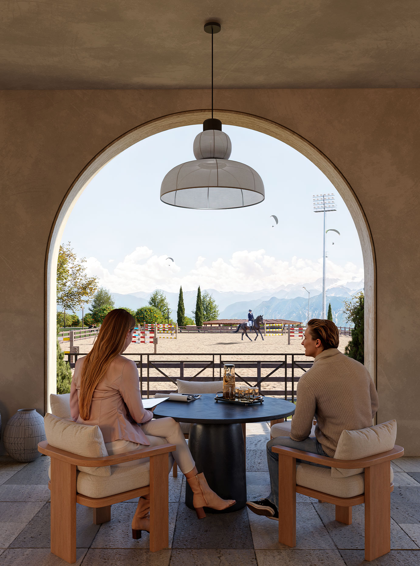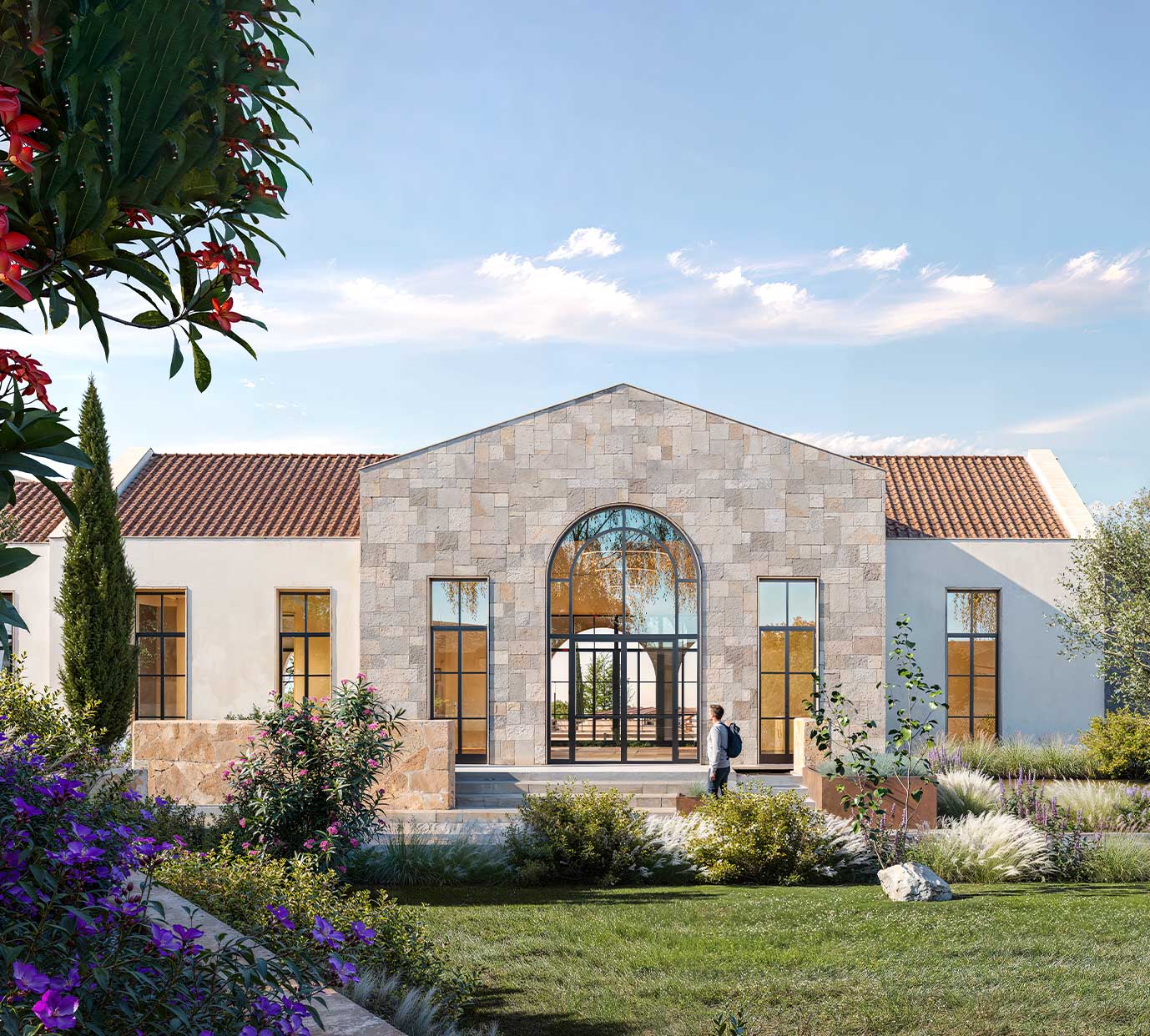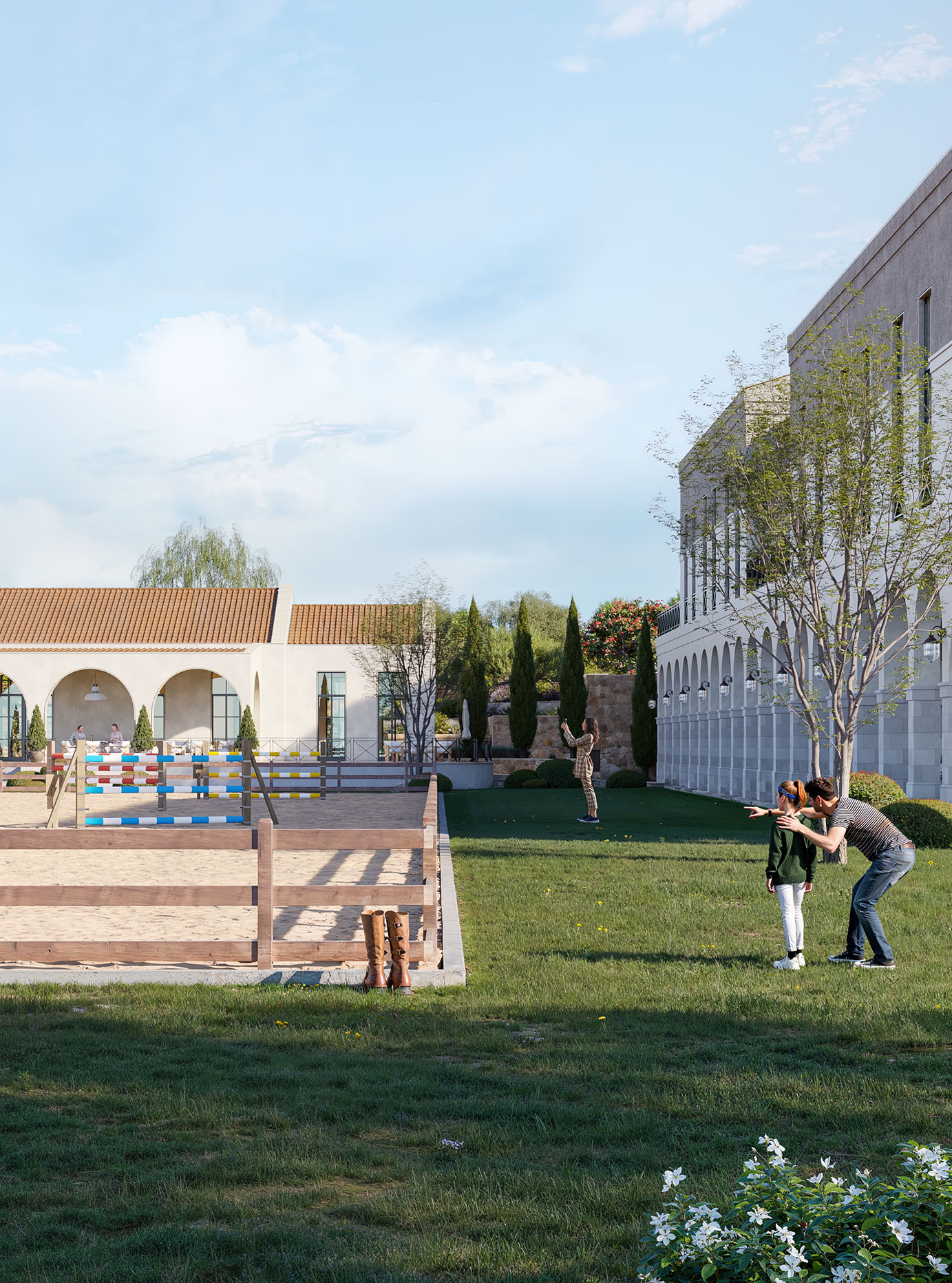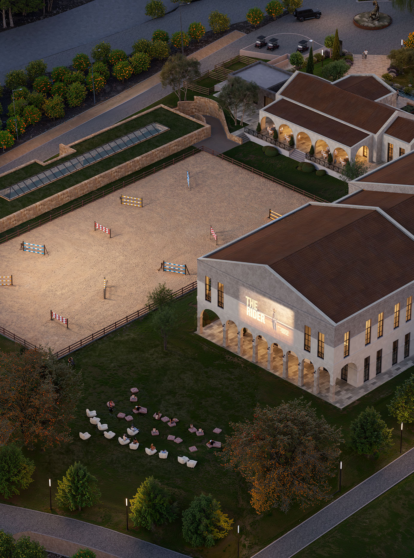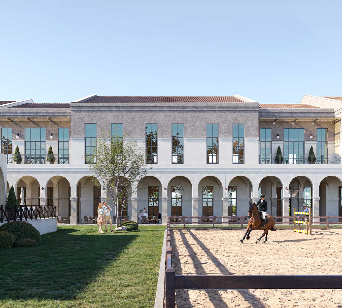 This equestrian facility was developed with inspiration from traditional Mediterranean architecture. On the facade locally sourced Mediterranean stones were used also arches were added as transition elements.